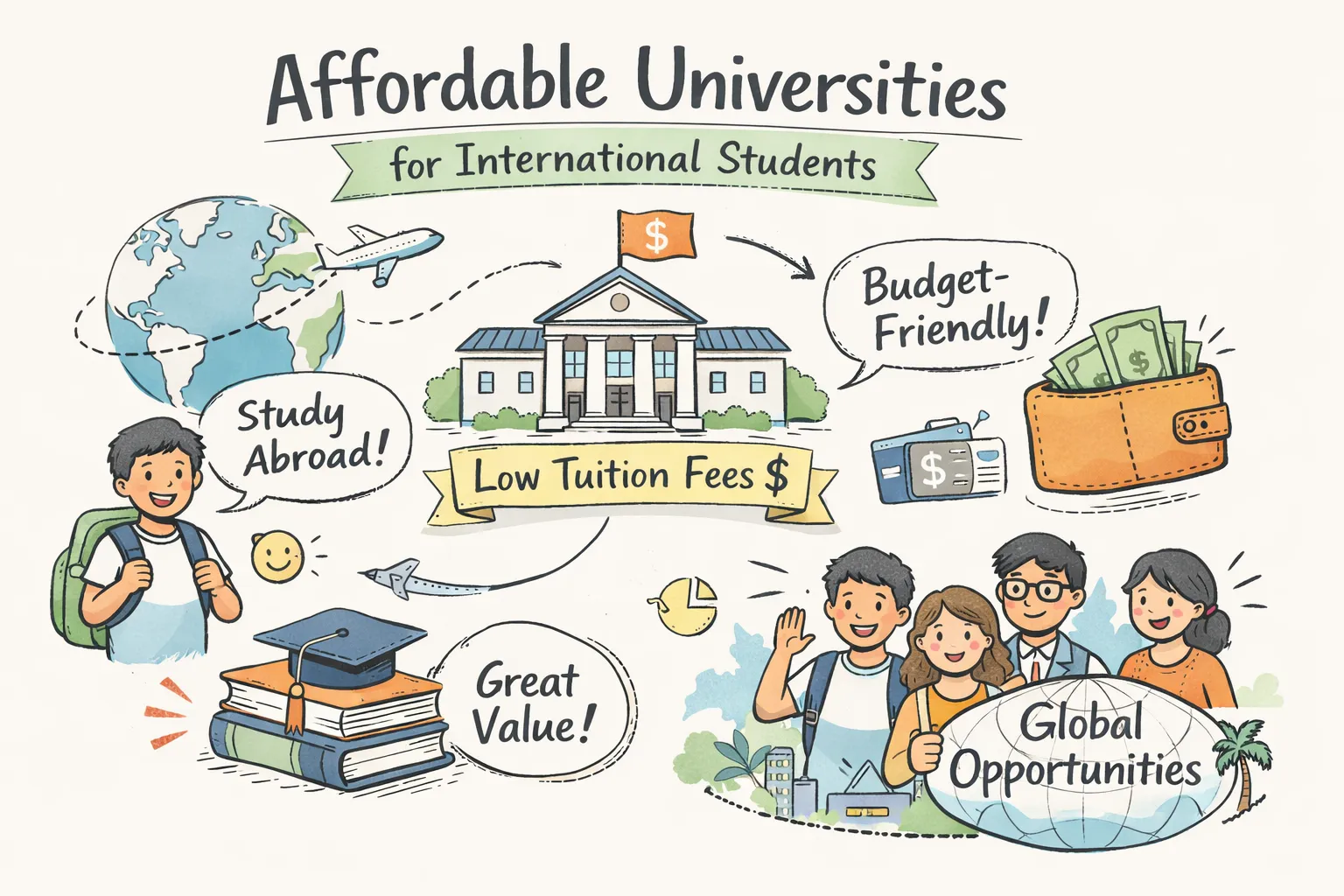 This guide gives you a practical shortlist of 35 budget‑friendly universities to investigate in 2026, plus a simple cost formula, two worked examples, visa/work notes that affect affordability, and a copyable application checklist. Read the regional shortlists, pick 3–5 targets, run the sample cost calculation, then follow the timeline to apply.