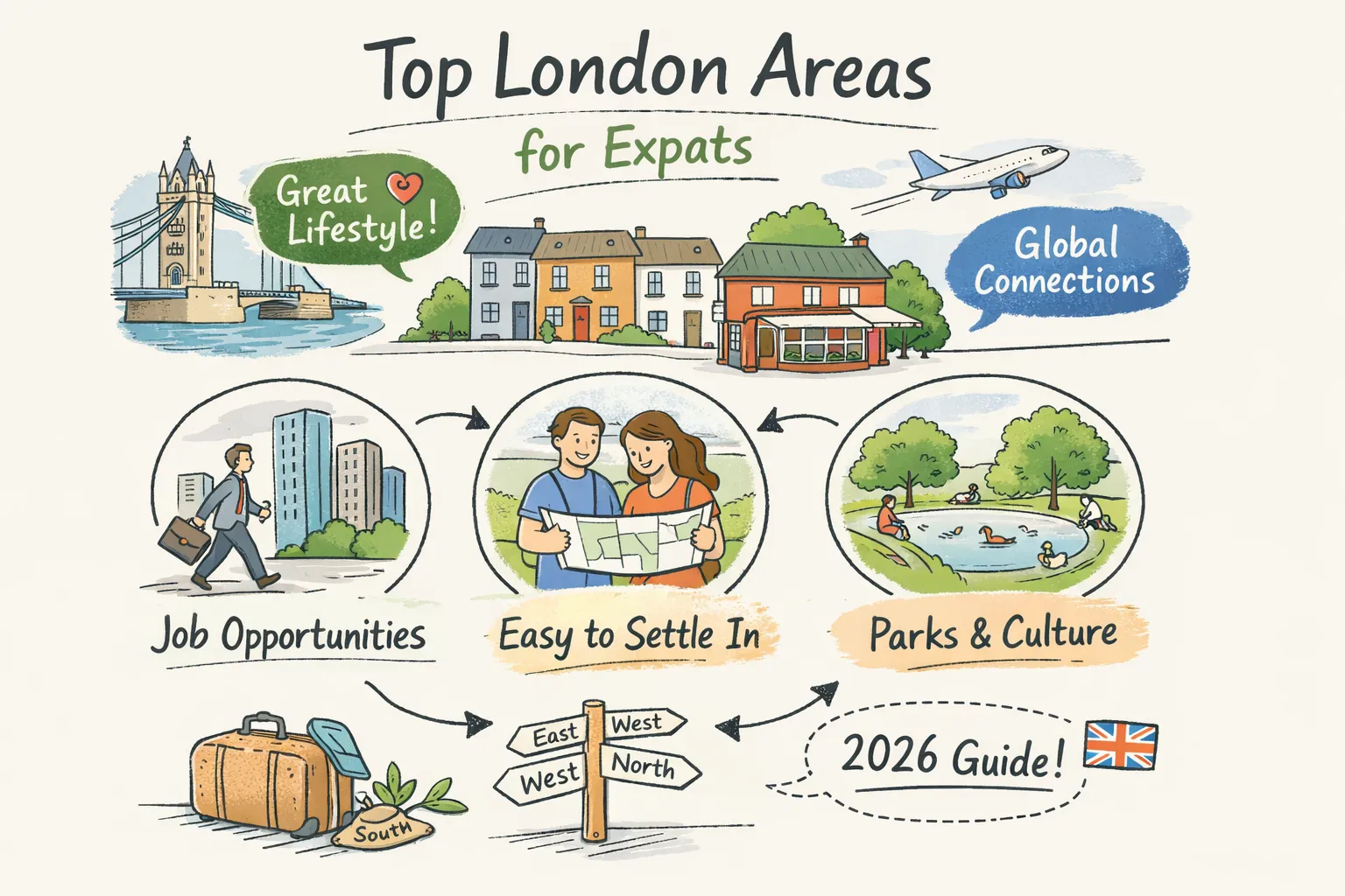 Expat services: Established expat clusters are strongest in Kensington & Chelsea, Notting Hill, Clapham, Islington and Shoreditch (see Where Expats Thrive: 15 Top London Neighbourhoods 2026 for a neighbourhood roundup). If you’re an American expat, our Essential Playbook for American Expats covers practical tips on settling in the UK. Look for international nurseries, embassy social pages and community meetups. Use ExpatsUK local groups and message threads to ask about school catchment reality, typical neighbours and recommended agents.